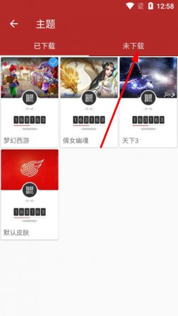 3、进入主题界面后,点击上方未下载查看可更换的主题。