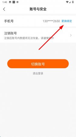 3、在账号与安全界面中,点击手机号旁的更换绑定选项,进入更换手机号流程。