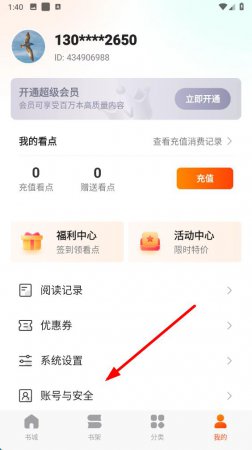 2、在进入的页面里,找到账号与安全选项并点击,进入账号安全管理界面。