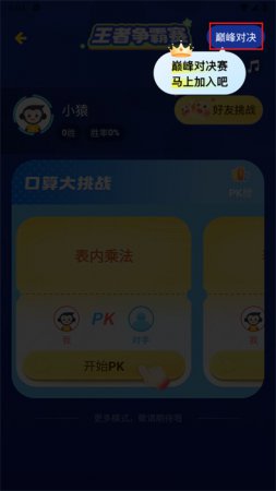 5、进入后点击【巅峰对决】来进行比赛。