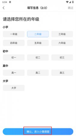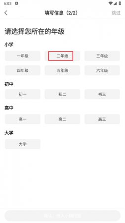 2、此时将需要进行年级的选择,可以按照个人的年级来进行选择。如【二年级】;