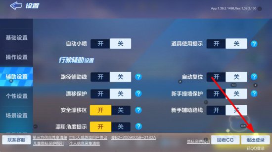 2、在设置页面中,找到并点击辅助设置,滑动到页面底部,点击退出登录按钮。
