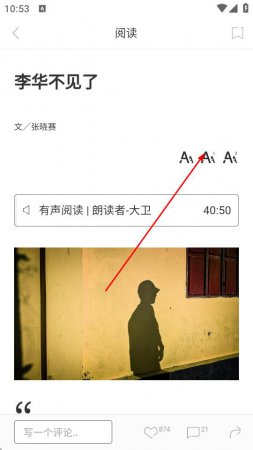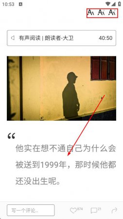 3、在文章阅读页面,点击右上角字体设置图标。