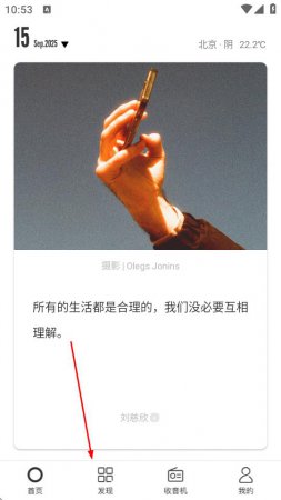 1、打开one一个App,点击底部导航栏中的发现选项。