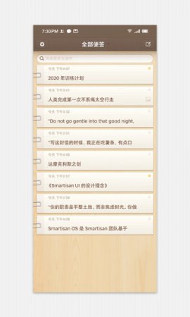 锤子便签与普通便签真的不同,它深深体现了老罗的情怀。为什么这么说呢?且看刚刚开启App的时候,印入眼帘的是舒服的原木色调的背景,搭配灰白色便签,左侧像曲别针一样的设计很逼真,仔细观察每个便签内还做了深浅颜色区隔设计,有层次,整体界面是舒服的。四条Tips提示便签的使用方式,不会让人感觉摸不着头脑,能感受到即便这是一款不会说话的应用,但它也在努力的对人进行情绪引导,让使用的人也心情舒畅。