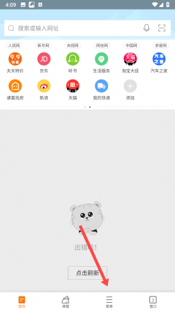 1、打开猎豹浏览器,点击底部导航栏中的菜单图标。