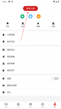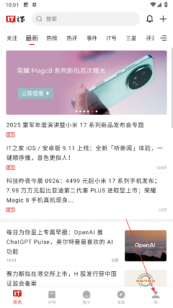 1、打开IT之家APP,点击界面底部导航栏的我,进入个人页面。