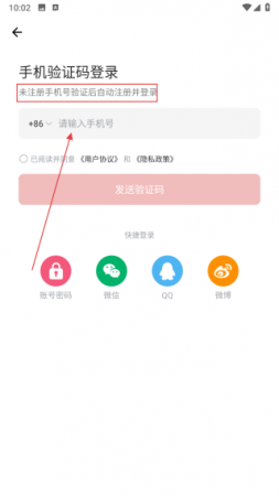 3、进入手机验证码登录界面,在输入框中填写需要注册的手机号码。
