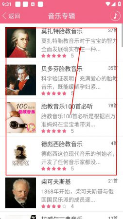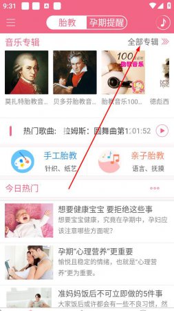 2、定期根据用户的预产期推荐不同的胎教音乐;