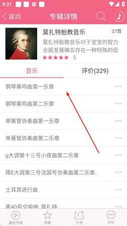 2、在音乐专辑列表中,选择想听的胎教音乐专辑,如莫扎特胎教音乐。