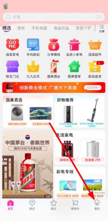 1、打开国美app,点击底部我的选项,进入个人中心页面。