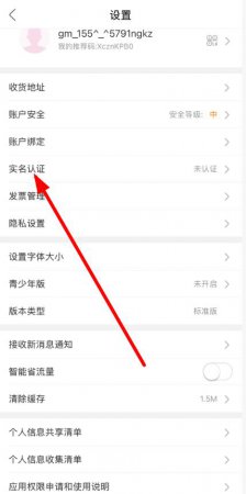 3、在设置界面,点击实名认证选项,进入实名认证页面。