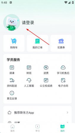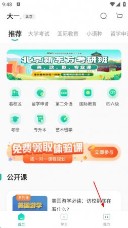 1、打开新东方APP,进入首页后,点击右下角“我的”图标,进入个人页面。