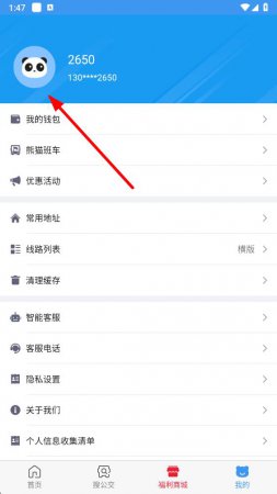 1、打开熊猫出行app,点击底部导航栏我的按钮,进入相关界面。