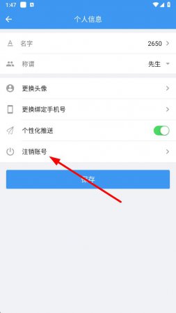 3、在个人信息页面里,找到并点击注销账号选项,进入注销账号说明界面。