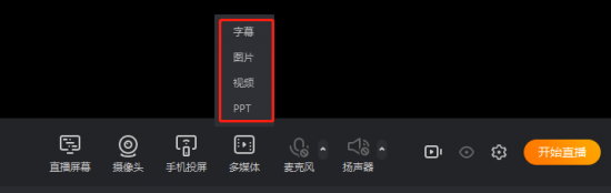多媒体来源可以在直播画面中添加文字、图片、视频以及ppt画面。右键所添加的素材元素,可以对其进行基本的设置和删除操作。伴侣内所有来源都可以通过按住键盘上shift键和Alt键进行拉伸和裁切操作,可以此来调节想要展示的画面内容。
