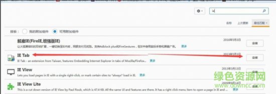4.然后在搜索结果中会看到“IE Tab”组件,点击右侧的“安装”按钮。