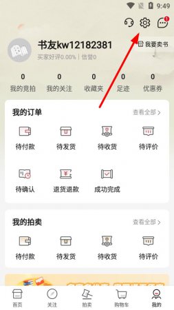 2、在我的页面右上角,点击设置图标,进入设置界面。