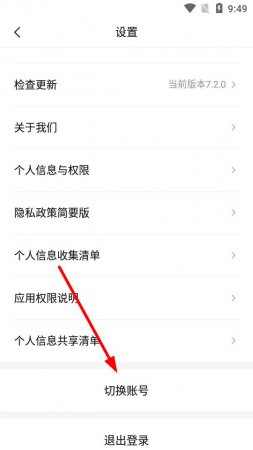 3、在设置界面中,滑到页面底部找到并点击切换账号选项。
