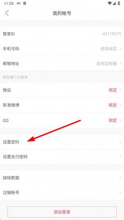 4、在我的帐号界面中,找到并点击设置密码,进入设置密码页面。