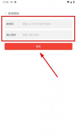 5、在新页面输入新密码,再次确认密码后,点击确定完成密码设置。