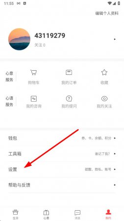 2、在个人界面中下方找到设置选项,点击进入设置页面。