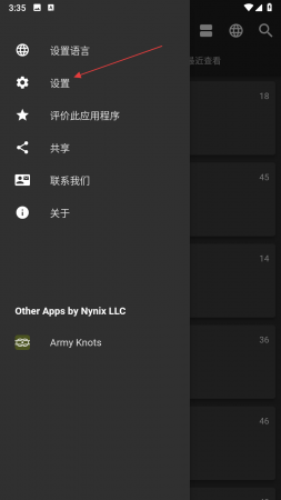 2、在展开的菜单中找到设置选项并点击,进入设置界面。