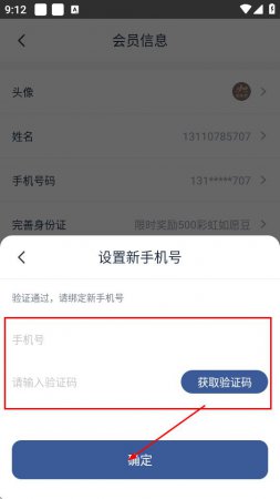 5、输入新的手机号,输入新手机号收到的验证码后,点击确定,即可完成手机号的更改。