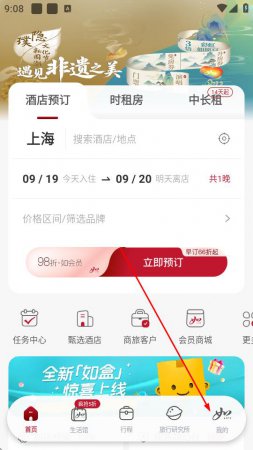 1、打开首旅如家APP,点击底部导航栏中的我的。