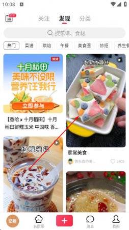 2、在首页发现页面中,找到你想要收藏的美食视频并点击进入。