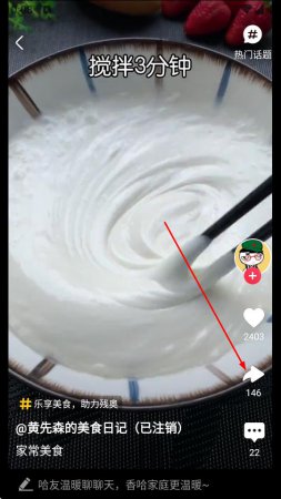 3、进入视频播放界面后,点击视频右侧的分享箭头图标。