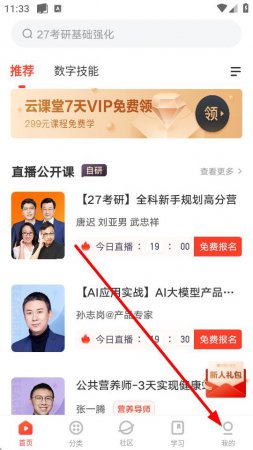 1、打开网易云课堂App,点击底部导航栏中的我的选项。