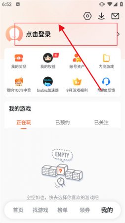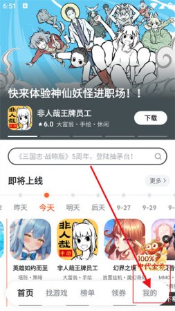 2、随后会看到首页,这里包含了很多网络上热门的游戏,并切换到【我的】;