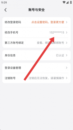 3、在账号与安全页面里,点击修改手机号的选项,即可按照提示完成手机号换绑操作。