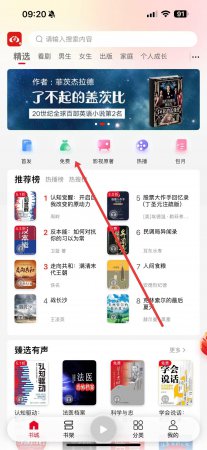 1、打开联通爱听APP,进入书城页面,点击上方导航栏中的免费选项。