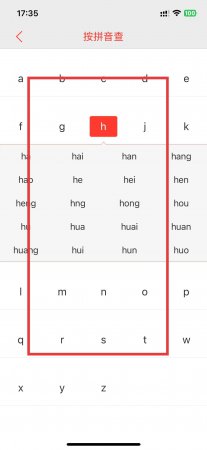 3、在按拼音查字页面,点击目标汉字拼音的首字母。