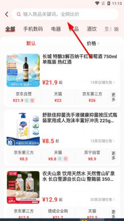 2、进入搜索结果页面后,在上方搜索栏输入需要查找的商品关键词,进行全网比价。