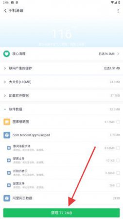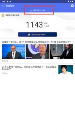 4、清理后,页面会呈现释放空间77.7MB的内存。