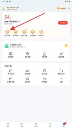 3、软件会检测手机中的垃圾,再点击清理的按钮。