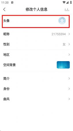 3、在修改个人信息页面点击头像选项,进入图片选择界面。