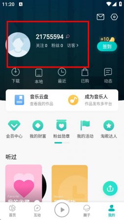 1、打开5sing音乐APP进入我的界面,点击上方个人头像区域进入个人主页。