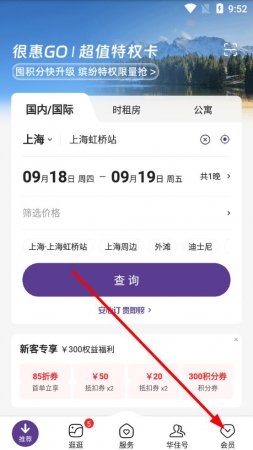 1、打开华住会App,点击底部导航栏的会员进入会员界面。