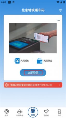 2、直接手机上就可以随时乘坐地铁,随时随地便捷的乘车服务,但是在乘车之前需要先点击【立即登录】才可以解锁自己的乘车账号;