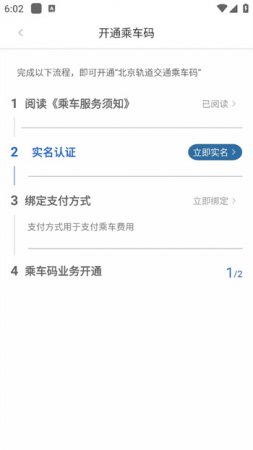 4、在这里乘车需要通过乘车码的一整个验证流程,同意相关的乘车服务须知,进行自己的实名认证、绑定制度的渠道,之后就可以开通自己的地铁乘车业务了。