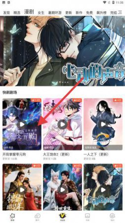 2、进入到此漫画中,能够自动播放每个漫画的内容,用户看完一条上滑查看下一跳的内容,以此类推。