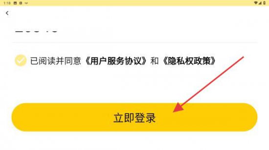 4、输入后,勾选已阅读并同意用户服务协议和隐私政策,再点击立即登录的按钮即可。