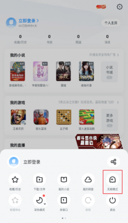 3、点击后在屏幕上即可弹出开启无痕模式的提示,在无痕模式下,uc不会在本地保存任何访问历史和搜索历史信息。