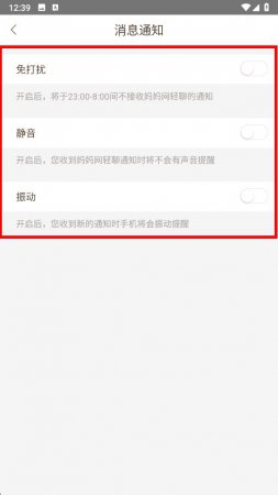 5、在该页面可对免打扰、静音、振动等通知相关选项进行关闭操作。