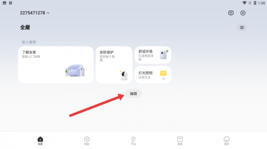 1、在米家的主页面中,点击编辑按钮进入编辑。
