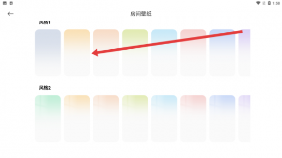 3、在房间壁纸页面里可以选择喜欢的颜色壁纸,点击进行更改。